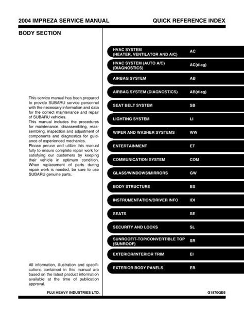 Read Online impreza service manual quick reference index general Reader Internet Archive